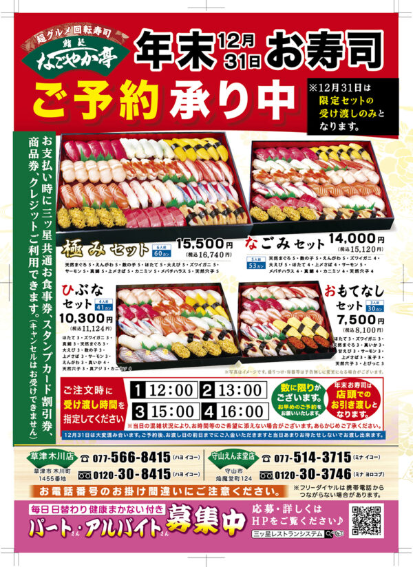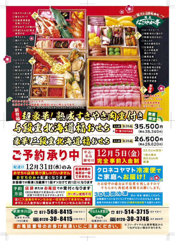 ☆☆☆なごやか亭特製 北海道福おせちの販売のお知らせ☆☆☆
