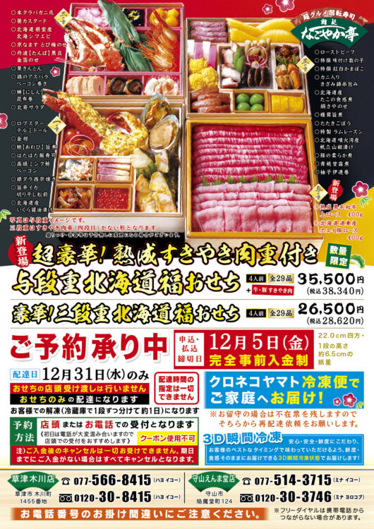 2025.10.15 ご予約釧路なごやか亭『年末おせち・年末お寿司セット』ご予約のお知らせ!