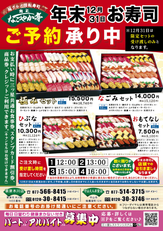 関西なごやか亭『年末おせち・年末お寿司セット』ご予約のお知らせ!
