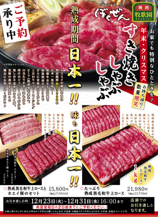 ぼくぜん・牧歌園『すき焼きしゃぶしゃぶセット』ご予約のお知らせ!